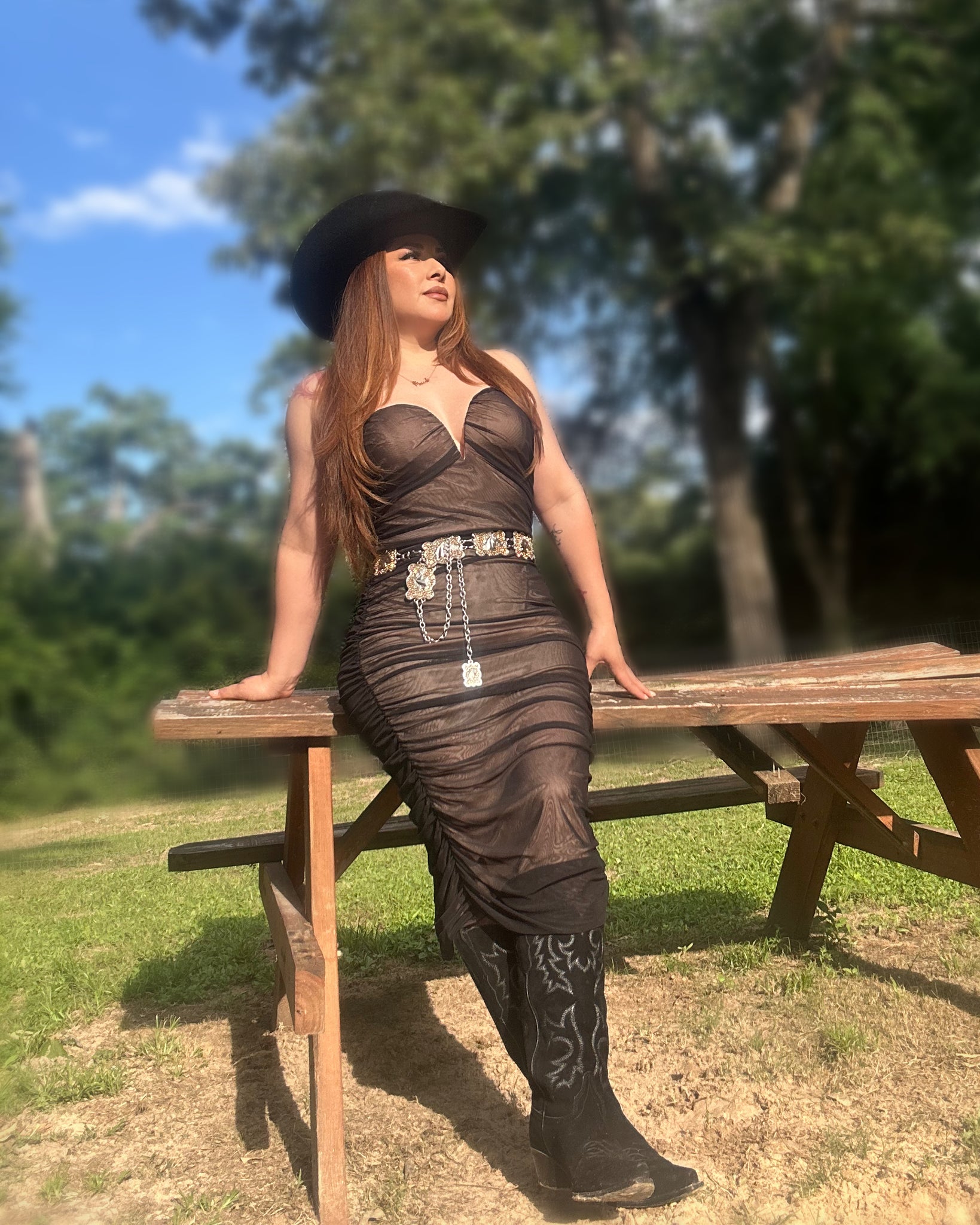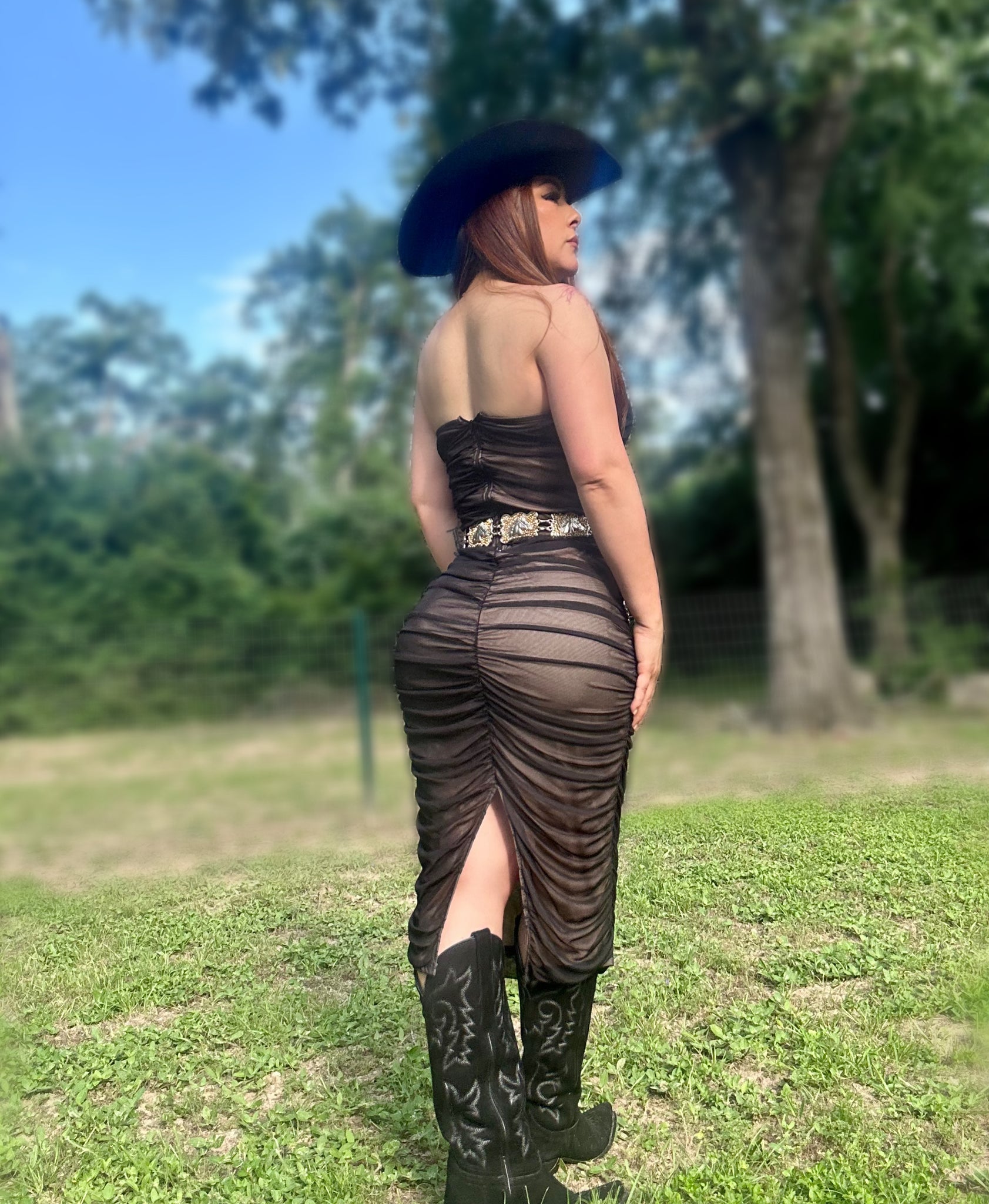 Strapless Midi Stretch Mesh Dress, With Zipper on The Back