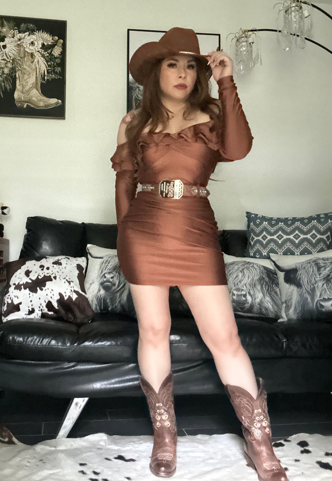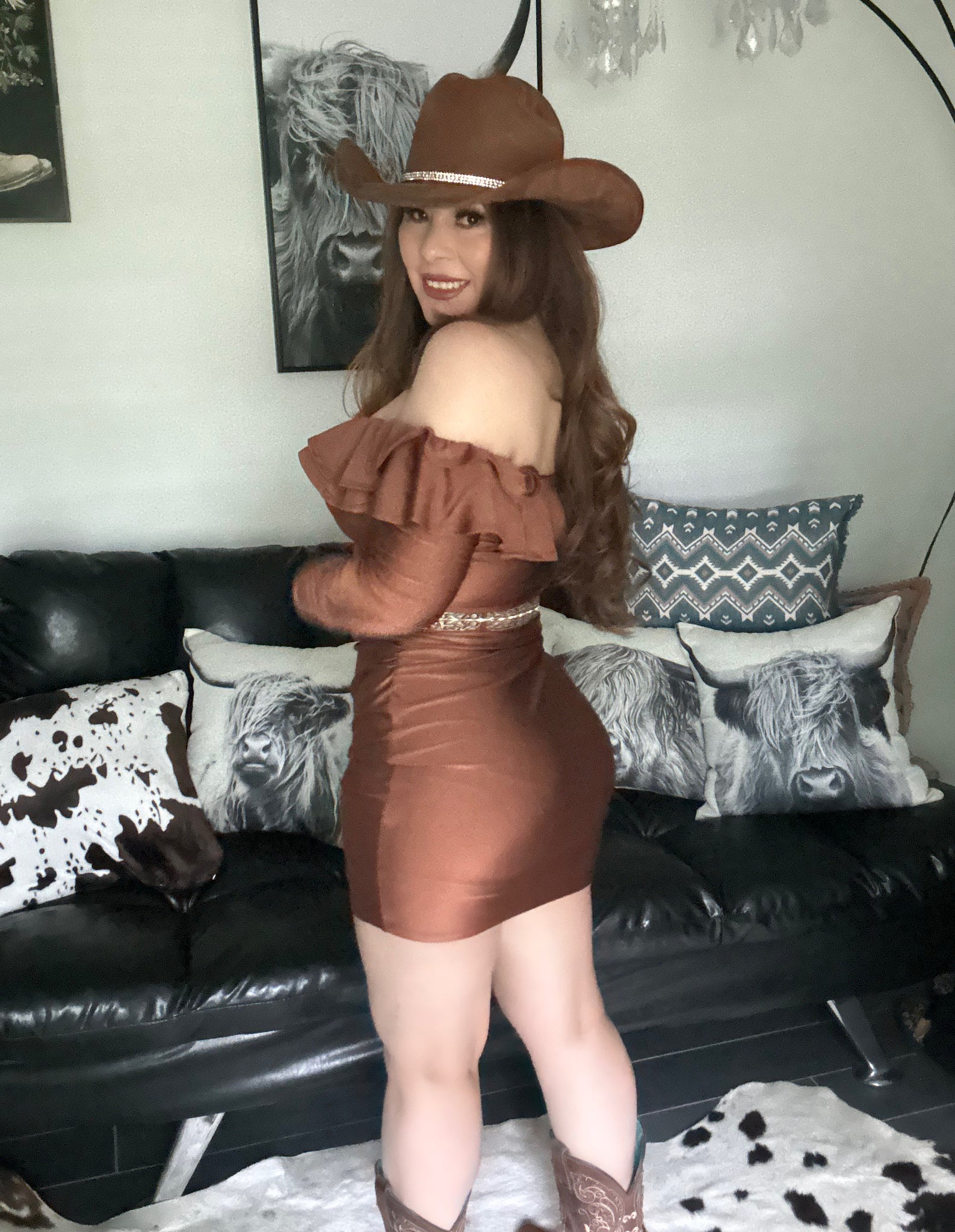 Long sleeve Off-Shoulder Mini Stretch Dress With Sexy Shoulder Ruffle.