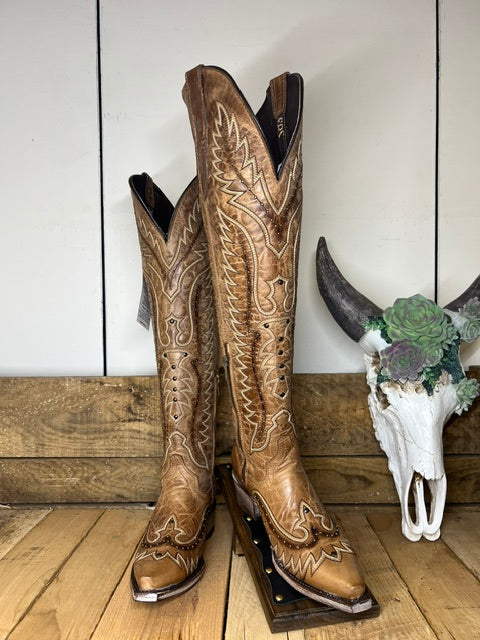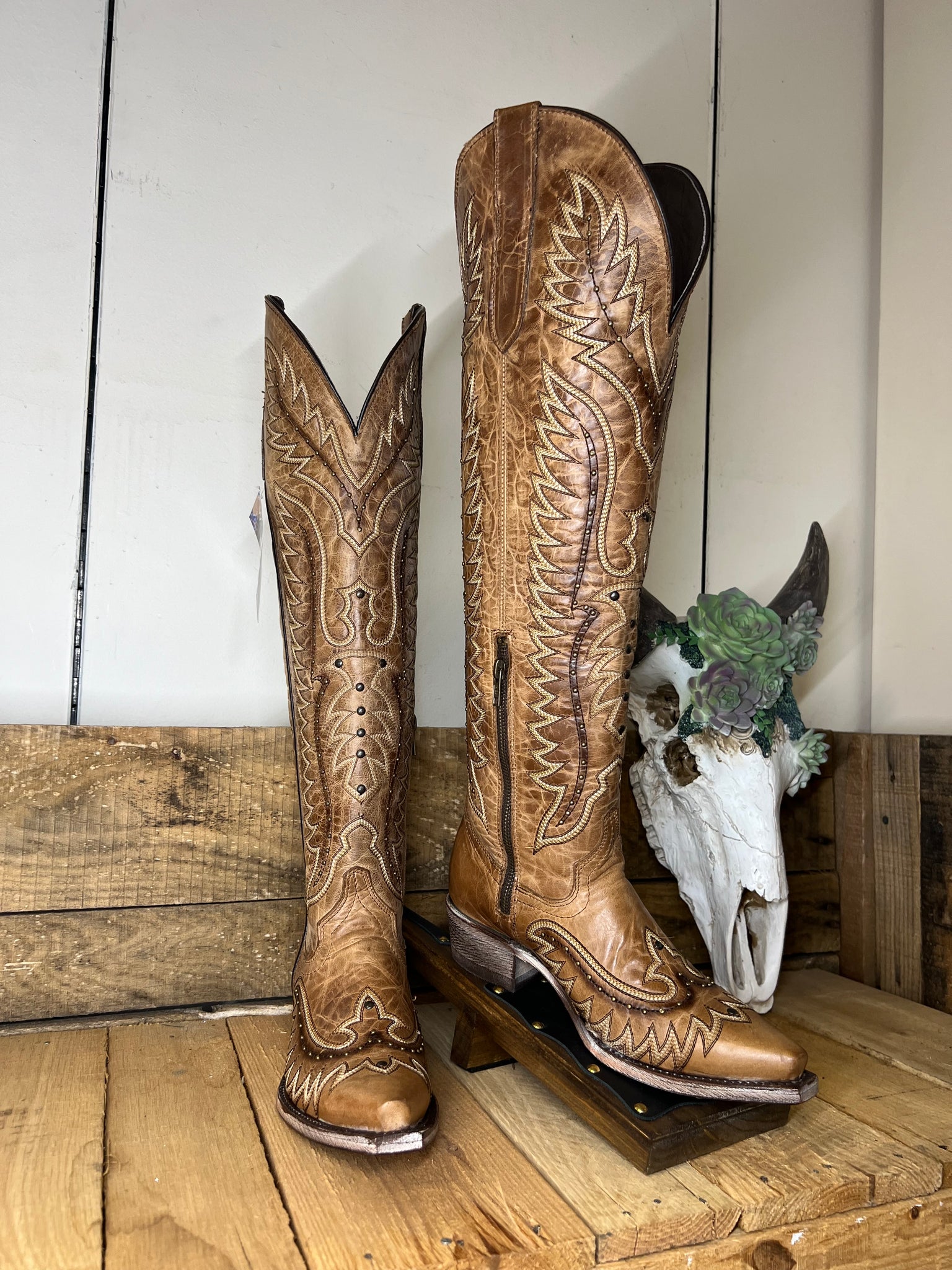 Wide Calf Boots super long with half zipper. Hand made in Mexico Old camel color