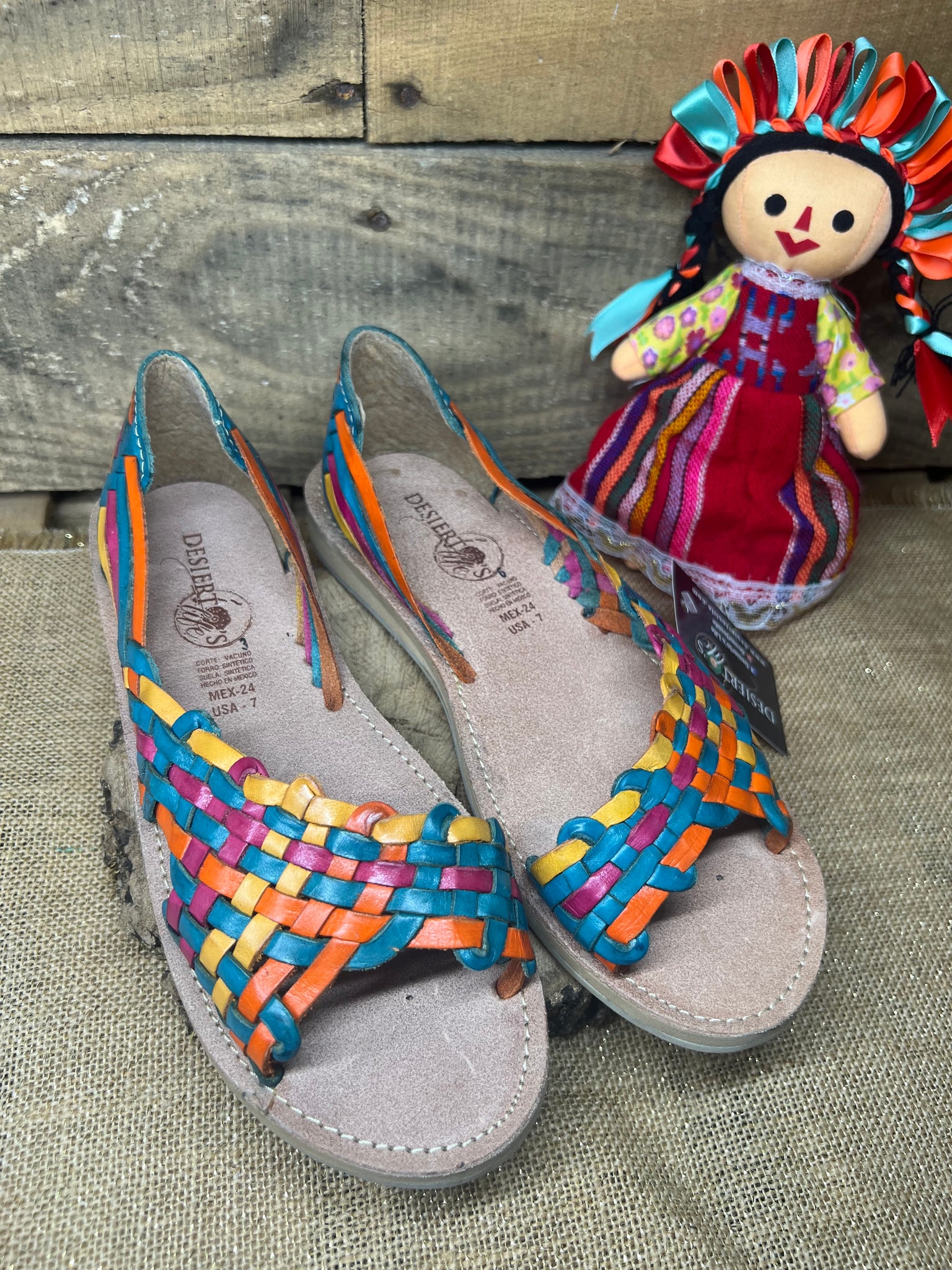 Genuine interlaced leather with vibrant colors, Hand made in Mexico.